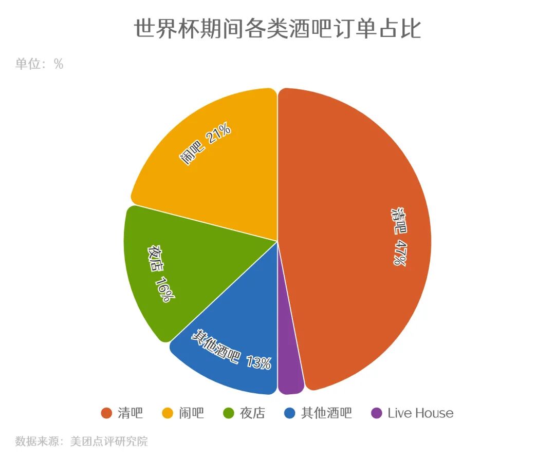 其中,清吧最受球迷欢迎,其外卖订单占总量的近50%,较平日有18%的增长,而整个酒吧行业的订单也有约15%的涨幅,晚上7点以后是世界杯期间的消费高峰期,并更大多集中于9点至次日凌晨3点。