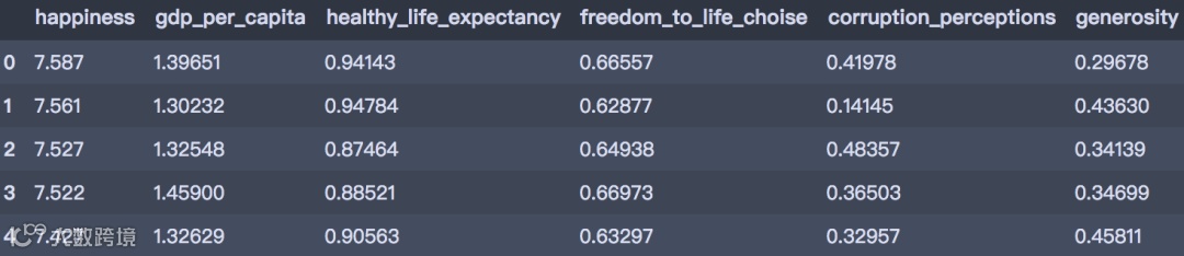 变量重要性排序为:gdp_per_capita、freedom_to_life_choise、healthy_life_expectancy、corruption_perceptions、generosity -