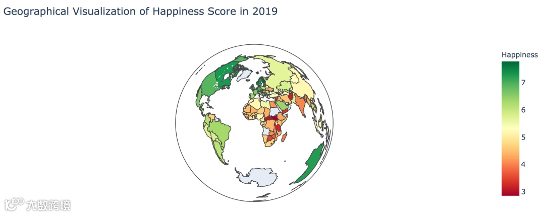 整体来看,北欧的国家幸福指数较高,如冰岛、丹麦、挪威、芬兰;东非和西非的国家幸福指数较低,如多哥、布隆迪、卢旺达和坦桑尼亚。