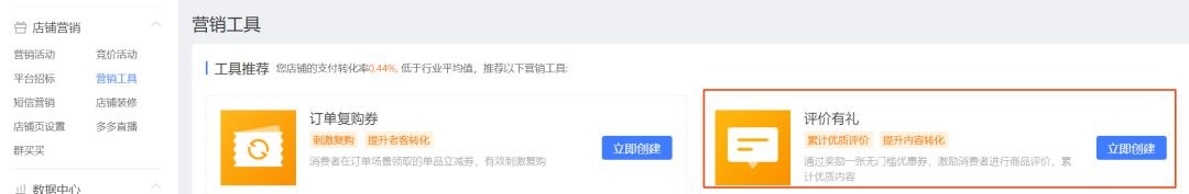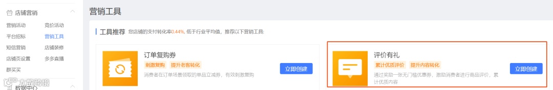 建议:使用【评价有礼】做好链接评价积累,工具入口:MMS-店铺营销-营销工具-评价有礼,该工具中用户的评价内容要求“20字+1张图”,能迅速出带图优质评价商详UV与转化率均有明显提升。
