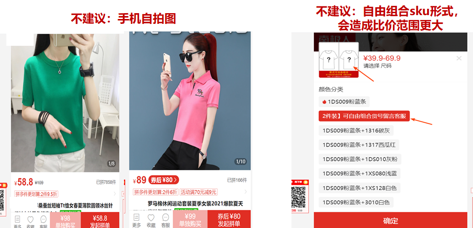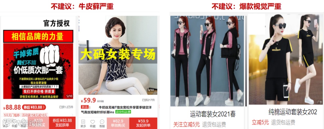 第三种:视觉不达标——商品主图、轮播图等有牛皮藓信息,未按要求上传活动白底图,且一看均为产业带爆款视觉。