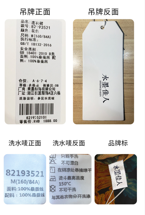 建议:参考已上线同类目商品的做法,补全三标信息(三标包括吊牌、洗水唛、品牌标,如下图),商详页增加三标装修。