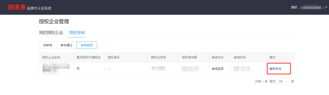 (4)若审核时错误点击驳回,可点击重新审核再次进行审核。