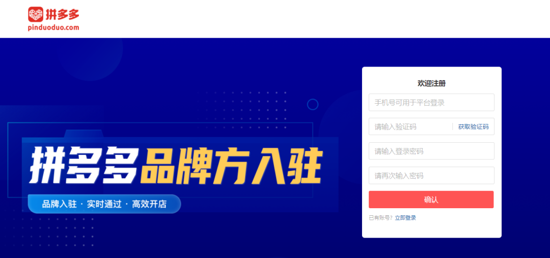 (1)打开品牌方认证系统网址https://brandside.pinduoduo.com/login/register