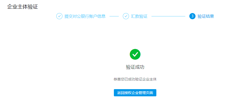 ③验证成功后,授权企业管理页面不再提示“企业主体待验证”