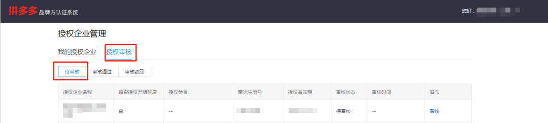 (1)点击授权审核——待审核