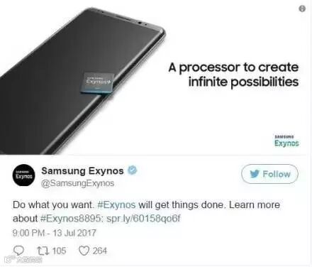 在一张推广Exynos 8895芯片的图片上,出现了一款从未见过的手机。其额头比S8更窄,宽度更宽,曲面的设计也更加精湛,屏占比应该更高。众多网友纷纷留言,这是提前偷跑了Note8吗?