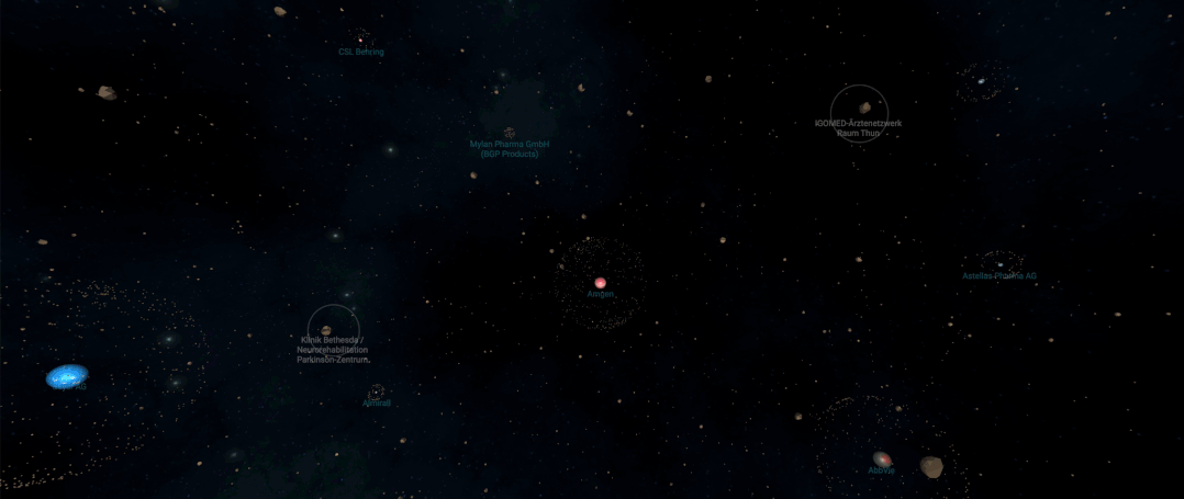 每年,60 多家大型制药公司会向医生和医院支付大量费用。该项目将这些金钱的流向和规模模拟成宇宙,读者可以通过导航宇宙飞船,来发现谁收到的钱最多,谁与谁之间关系密切。