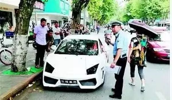 宋警官示意该车停下接受检查。驾车的徐某出示驾驶证,但在提供该车的手续时,先是掏出一张标有红色类似QQ外型图的说明书,又掏出一张厂名标注不清的“车辆合格证”,却拿不出行车证。再检查车牌,只是一块写有“兰博基尼”四个大字的黑色底板。