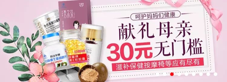 例如下方母亲节大促海报图突出利益点,购买场景。