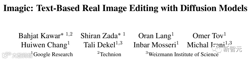 来自谷歌、以色列理工学院、魏茨曼科学研究所的研究者介绍了一种基于扩散模型的真实图像编辑方法——Imagic,只用文字就能实现真实照片的PS。