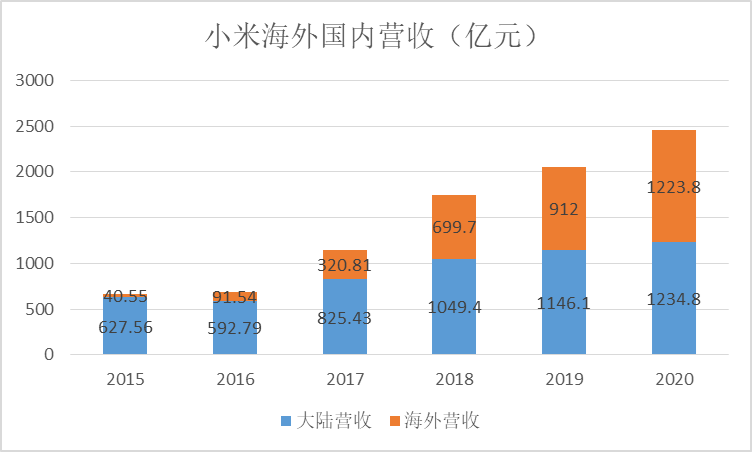 小米的海外业务如火如荼,在营收上也得到了反映。在2015年到2020年期间,小米的国内收入复合增速只有14.5%,但是小米的海外收入复合增速高达97.7%。也就是说,小米这些年的收入增长,和其海外业务的大力拉动离不开关系。