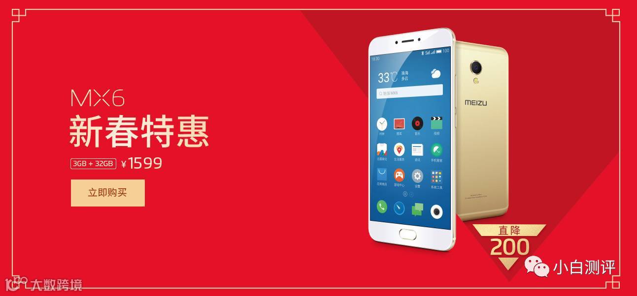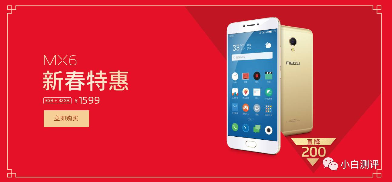 3号魅蓝Note 5的突然涨价可能让持币购买的用户有些小失望,不过今天,魅族宣布对老旗舰MX6进行新春特惠,直降200元。