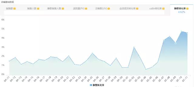 如图2所示,可以看出,如果没有特殊情况,一般店铺的静默转化率和对应的全店转化率趋势变化相对会比较平行。