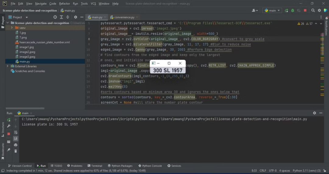 pytesseract:您将使用这个库提取车牌字符,并将它们转换成字符串。 pipinstallpytesseract pytesseract库依赖Tesseract OCR引擎进行字符识别。