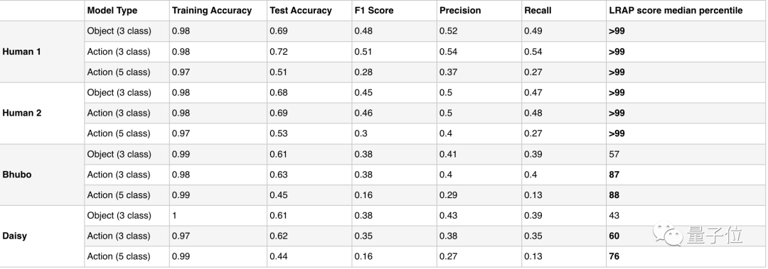 为了作比较,两名人类志愿者也以同样的程序观看了这些视频片段。