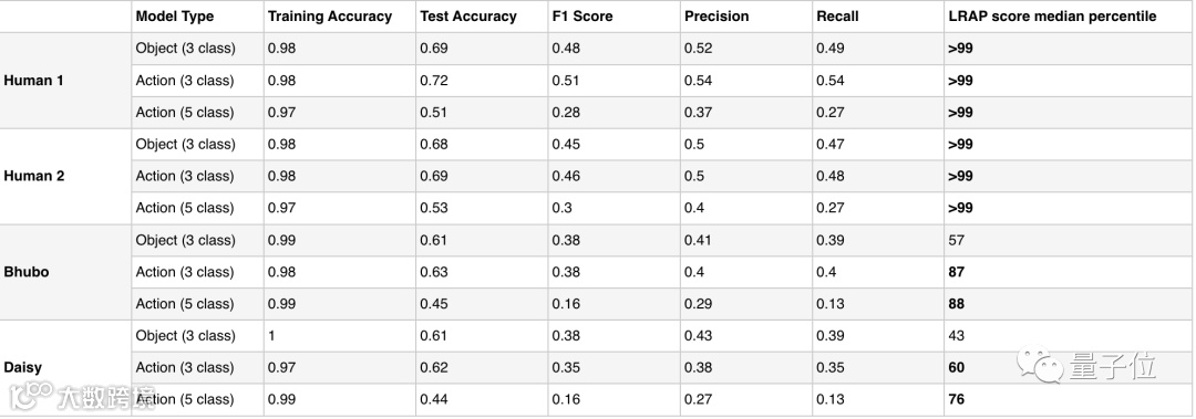 而在对狗的大脑数据进行解码时,该模型对基于物体的分类器基本不起作用;不过对于基于行为的分类器来说,准确率可达60%至88%。