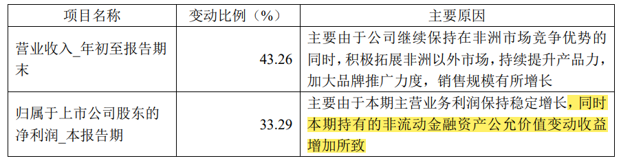 环比来看,公司收入环比增长11.36%,利润环比增长23.54%,也表现不错。我们都知道传音的营收是存在一定的季节性特征的,下半年的营收是要明显好于上半年,传音今年上半年表现不错,所以今年的环比基数也是比较高的,三季度在上半年基数比较高的情况下,还能录得11.36%的增长,还是不错的。特别是在利润端,归母净利润环比增长远超收入增长。