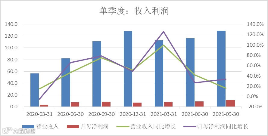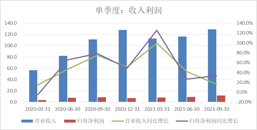 从营收来看,公司三季度营业收入129.2亿,同比增长16.13%。同比增幅继续出现下滑,三季度同比增速放缓大家其实都能预期的到,主要还是和去年疫情的影响有关。去年上半年部分的需求递延到了三季度,所以去年三季度的基数相对较高,今年3季度能取得16%左右的同比增长,其实还算可以。从利润来看,公司的归母净利润同比增加33.29%,远高于收入端的增速16.13%的增速,这个就比较超预期了。
