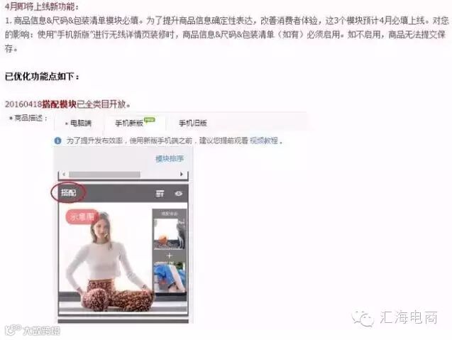 点评:搭配板块全类目开放,还可以添加视频!大家抓紧去试试吧,不但能提高产品的转化率还可以增加无线端的停留时间!
