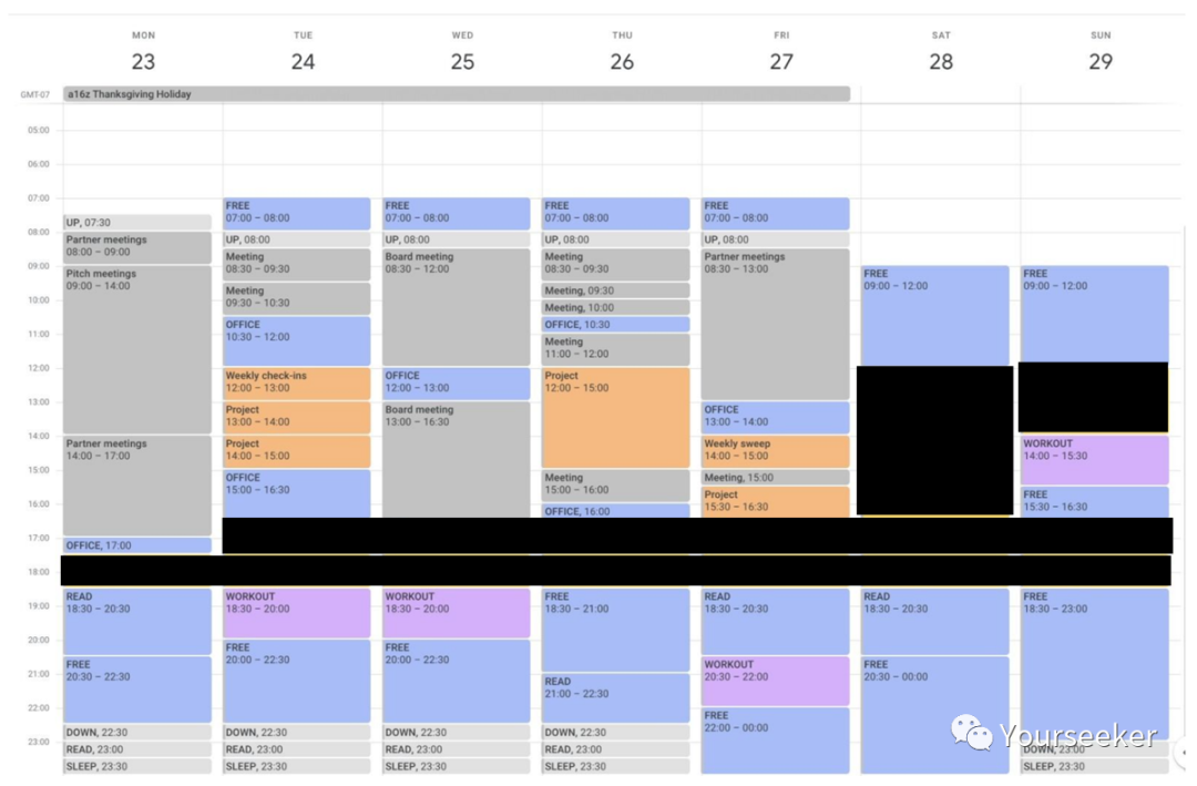 最让人大跌眼镜的就是,曾经最讨厌计划日程的他,现在无比遵守日程安排。我们甚至可以一睹他最近的 calendar: