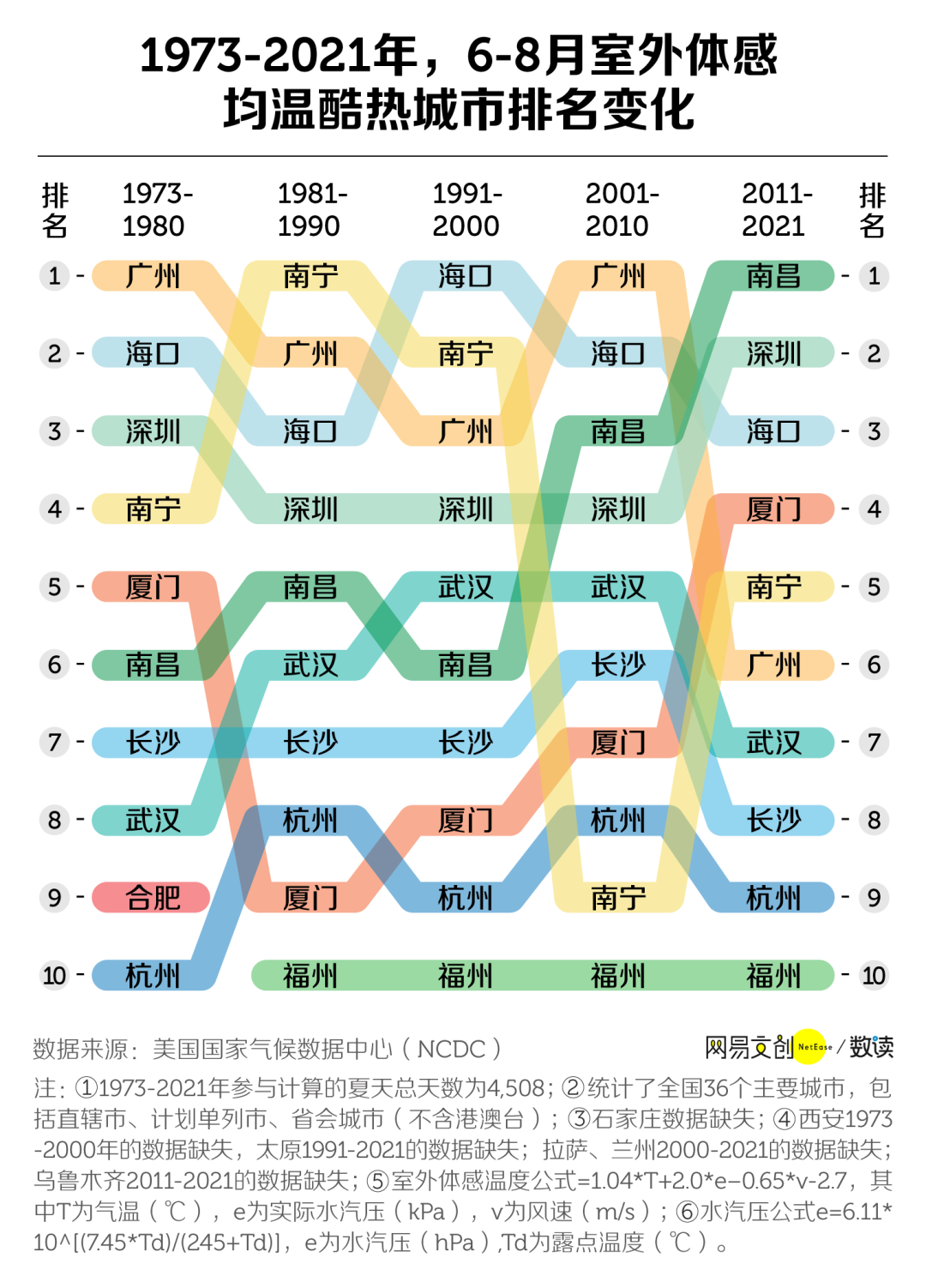 “酷热城市”前十把交椅,常年被南昌、深圳、海口、厦门、南宁、广州、武汉、长沙、杭州、福州把控。