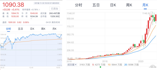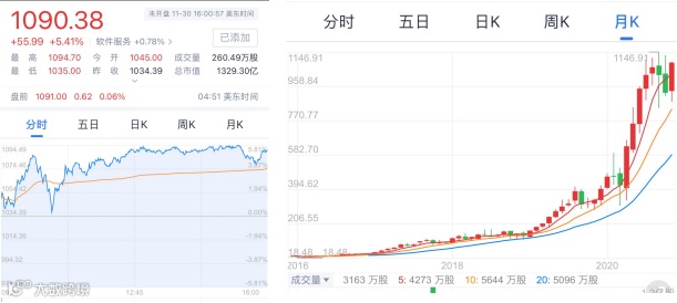 Shopify 12 月 1 日股价及月k | 来源:腾讯自选股