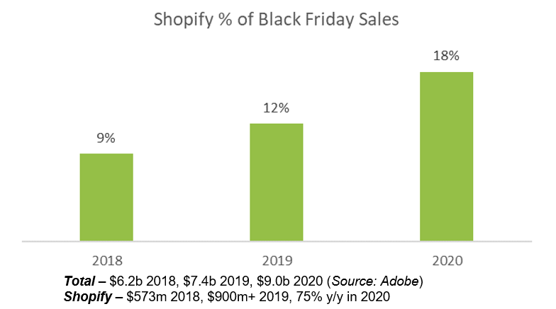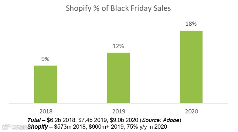 Shopify “黒五”销售额占比变化| 来源:Shopify 官网