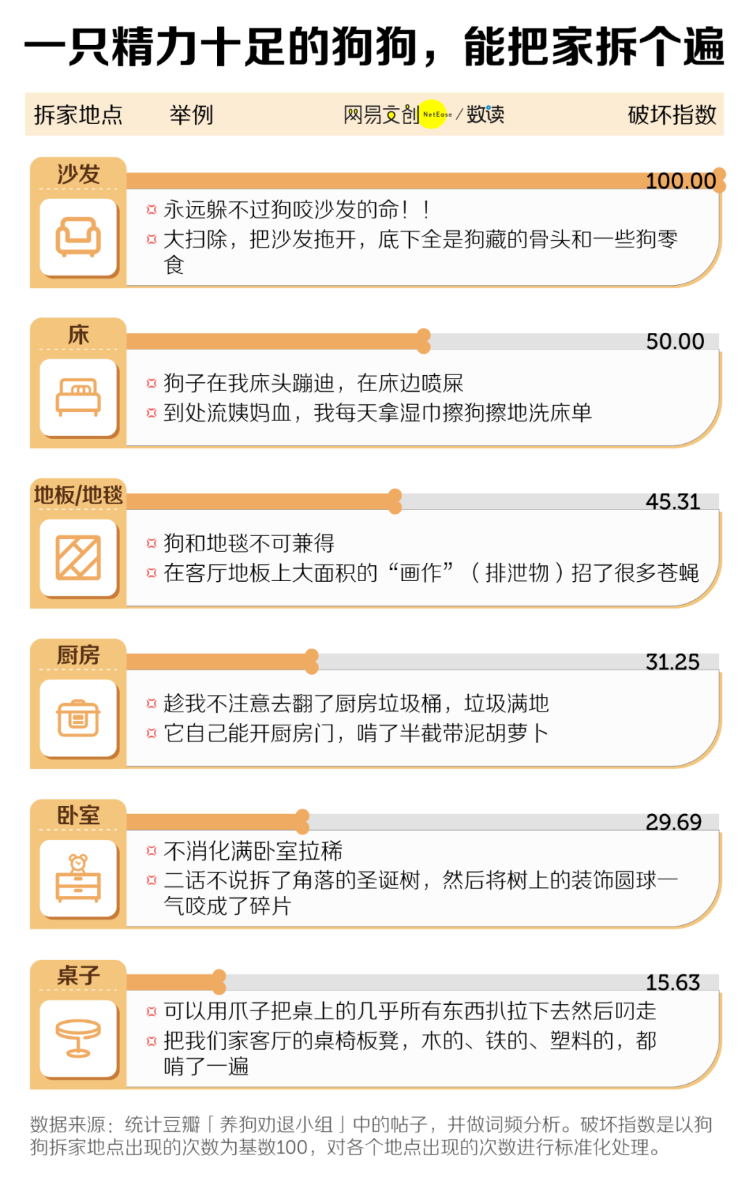 并且一只狗的到来,可能会让你崭新的家面目全非。在豆瓣“养狗劝退小组”中,许多铲屎官都抱怨着,被拆家简直是养狗路上必经的一道劫。
