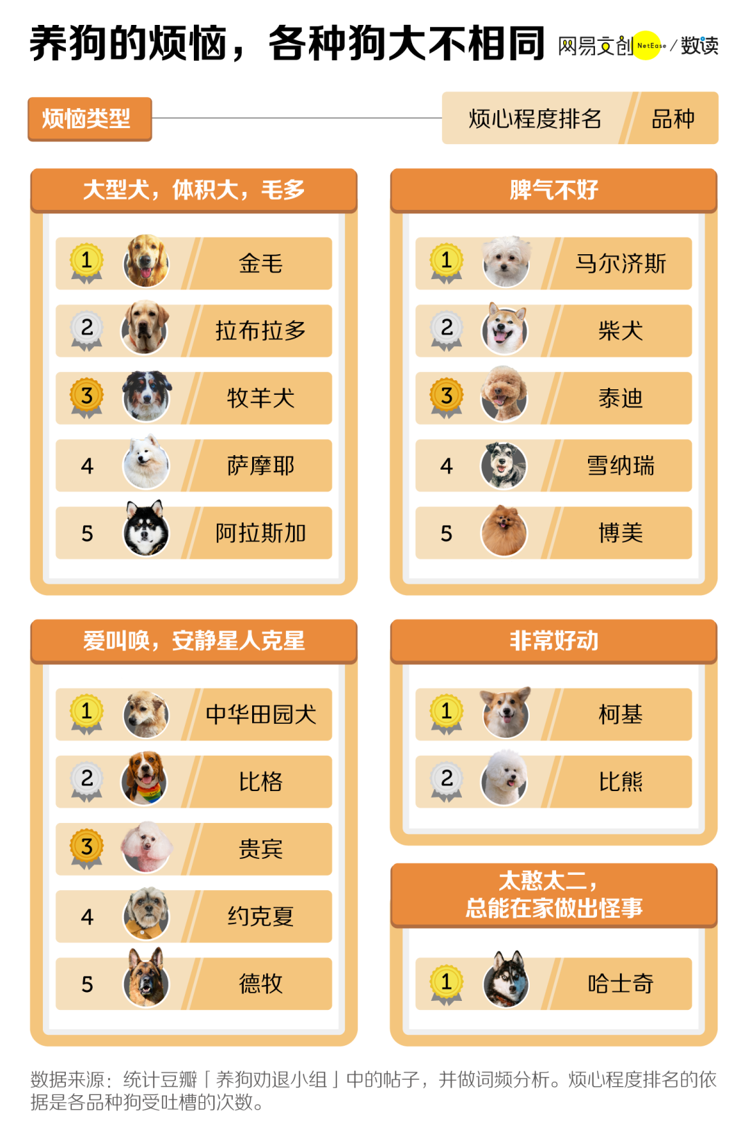 在豆瓣「养狗劝退小组」中,被吐槽最多的大型犬是金毛。