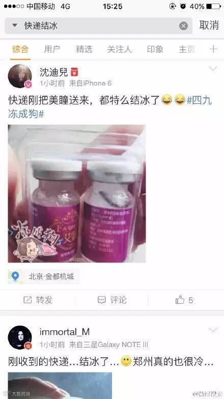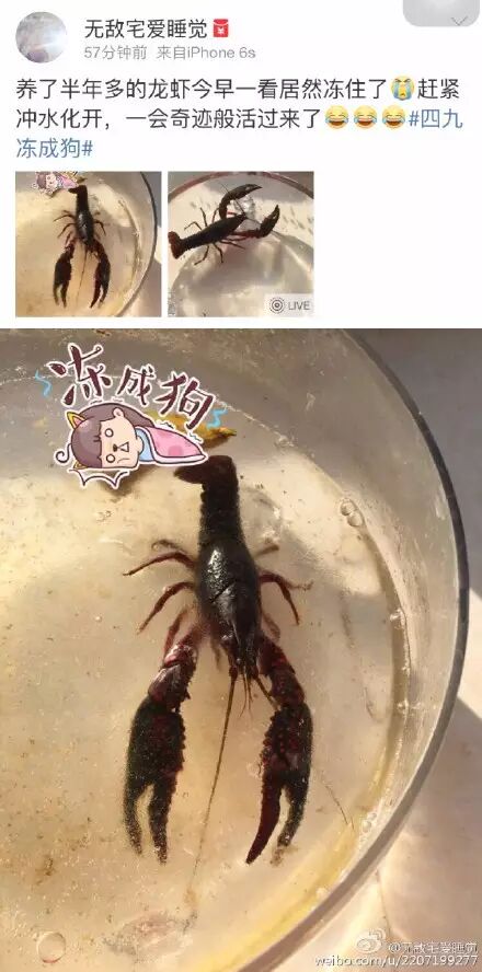 别忘了你们的快递已经在路上,冻成了狗,你们自行感受下: