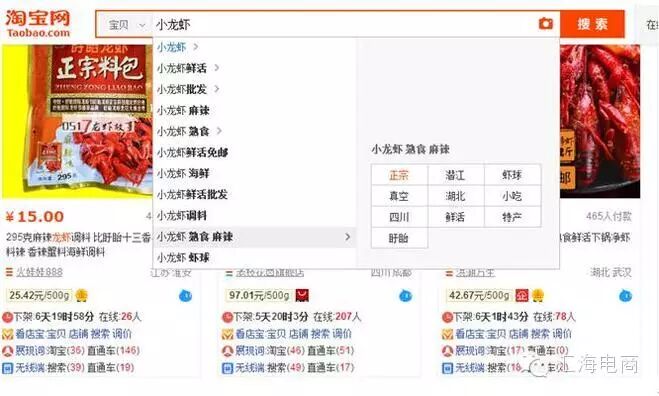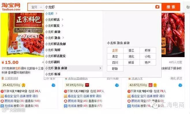 目前店铺排到了香辣小龙虾类目的首页