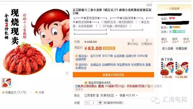 上次给大家写的是女装的类目,今天给大家来个食品类目,一说到食品,我就想到周小帅,那是把小龙虾做到炉火纯青的一个店铺,这也说明一个道理,技巧是辅助产品的,有好的产品和营销,你成功的几率才会大。