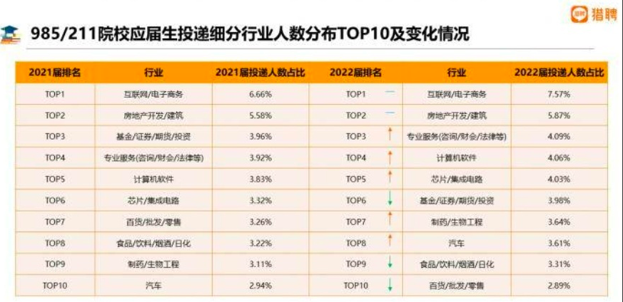 985/211高校应届生的投递行业,稳居第一的依旧是互联网「大哥」: