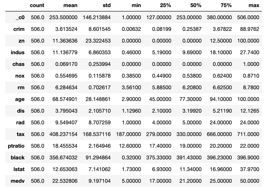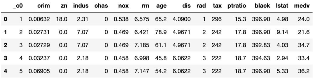 为机器学习准备好数据。而我们只需要两列--feature和label("medv")。