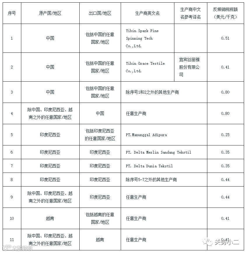 附表:印度对涉华粘胶短纤纱反倾销终裁结果