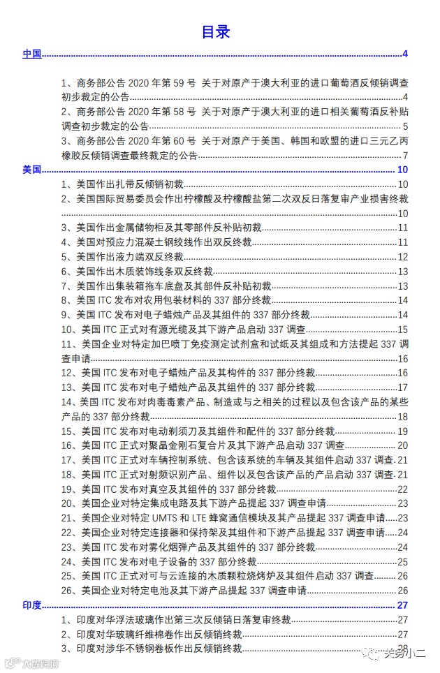 如需查询了解2020年12月双反调查信息,请在公众号后台回复“12月双反”获取2020年12月中外反倾销反补贴调查汇总(电子版)。