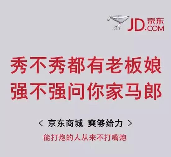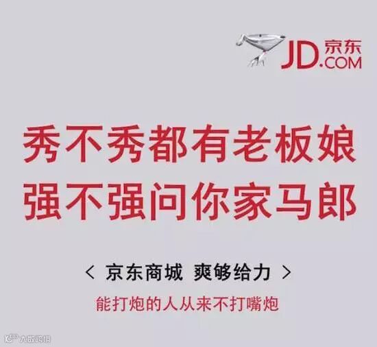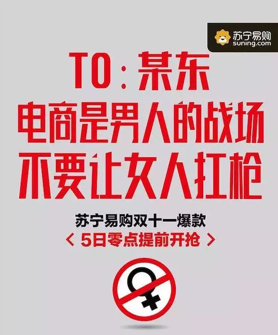 被苏宁方面以此奚落了一番,第二天下午另一组言辞同样犀利的海报横空出世,文案中毫不掩饰地充斥着“打炮”“爽”“干爹”“马郎”等直白低俗的字眼。
