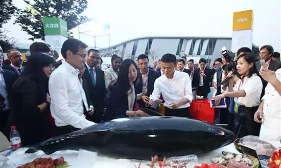 10月13日,阿里巴巴在杭州西溪园区正式举行了2015年双十一启动仪式,仪式中马云拍下了天猫生鲜电商的第一单——一条重达68公斤的蓝鳍金枪鱼。据说当天在阿里巴巴的公司食堂里,这条标价38888元的日产金枪鱼成了员工们口中的美味。
