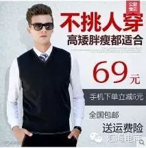 马甲替换主图、车图:同行马甲的主图、车图做得都很简单,主要看款式。一般买马甲当爸爸装来穿的居多,但是中年男性一般身材比较走样。所以抓住马甲适用人群广的特点重点宣传。做出差异化,附加售后这块作为第二卖点(详情和主图做出赠送运费险和15天无理由退换的文案)让买家对产品质量有信心。