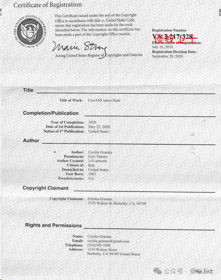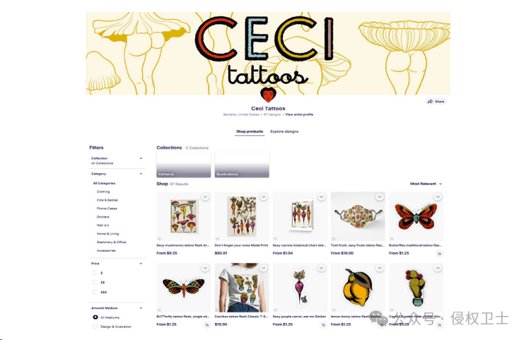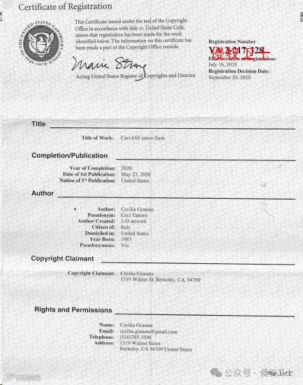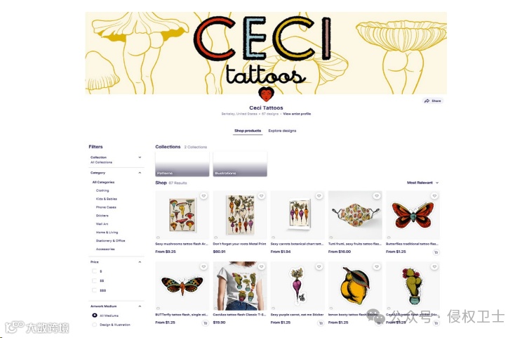 6月26日,Keith律所代理CECI TATTOOS的版权图案侵权案,案件编号24-cv-5329;品牌持有人是Cecilia Granata画家。