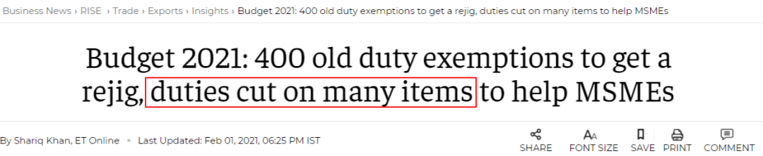 https://economictimes.indiatimes.com/small-biz/trade/exports/insights/budget-2021-400-old-duty-exemptions-to-get-a-rejig-duties-cut-on-many-items-to-help-msmes/articleshow/80631119.cms