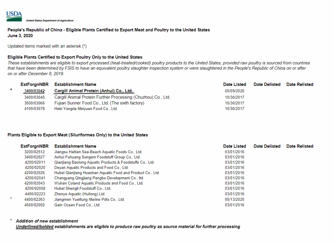 一些国家对准入其国内的、特殊品种的外方食品生产要求必须在该国取得注册资质,如对美出口禽肉相关产品,需先取得资质、注册号等并经其官方公布的企业方能出口到其国内。