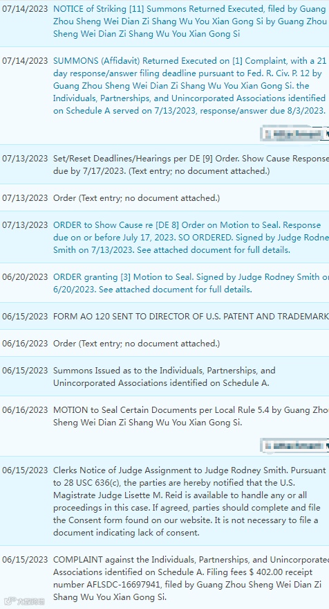 NOTICE of Striking [11] Summons Returned Executed, filed by Guang Zhou Sheng Wei Dian Zi Shang Wu You Xian Gong Si by Guang Zhou Sheng Wei Dian Zi Shang Wu You Xian Gong Si