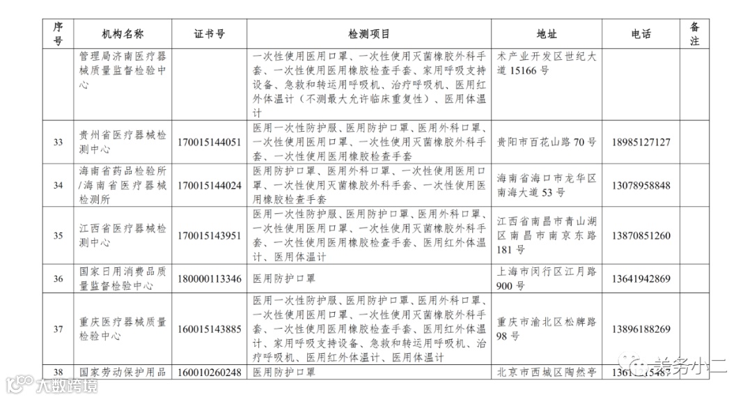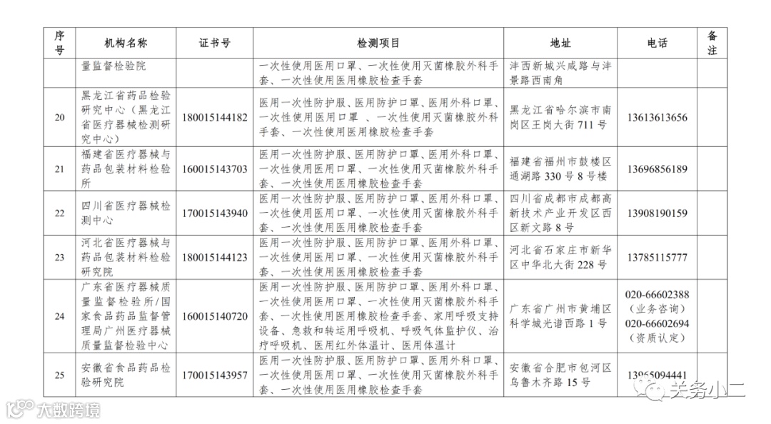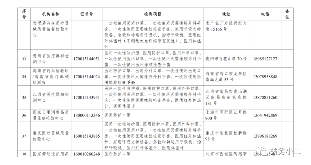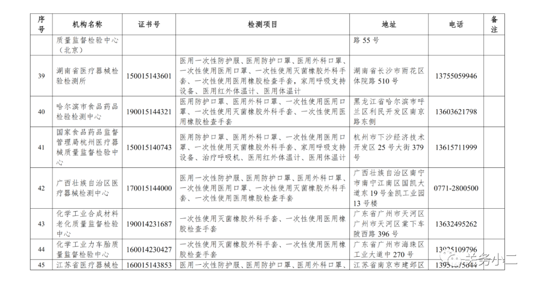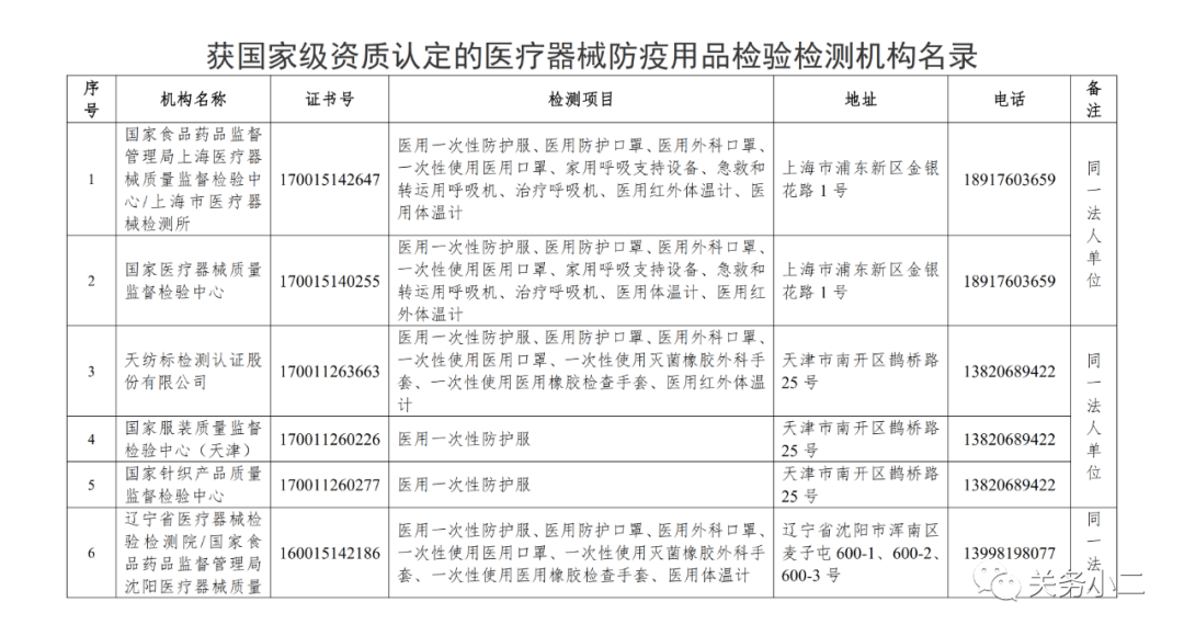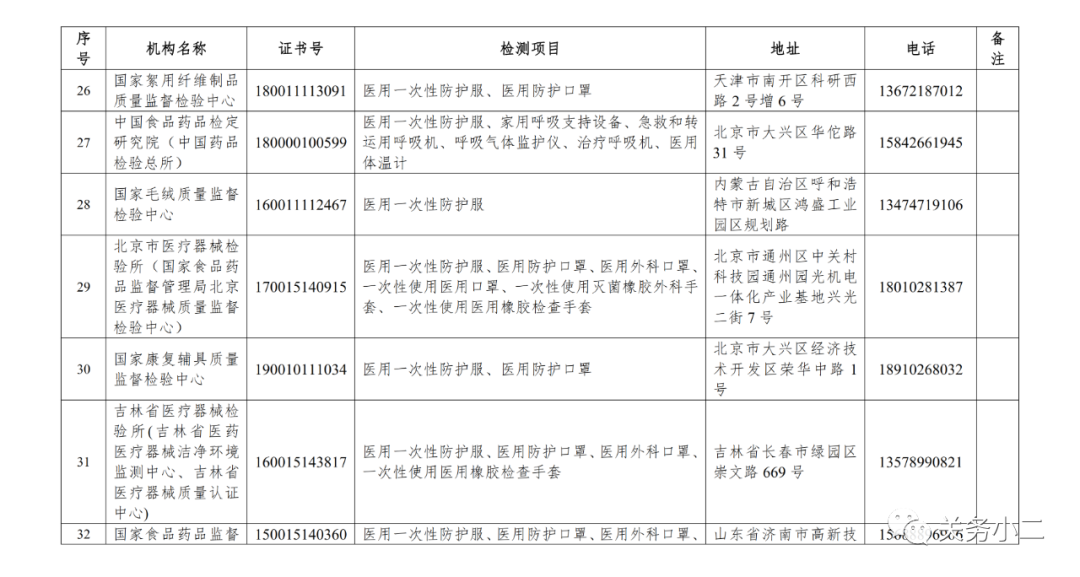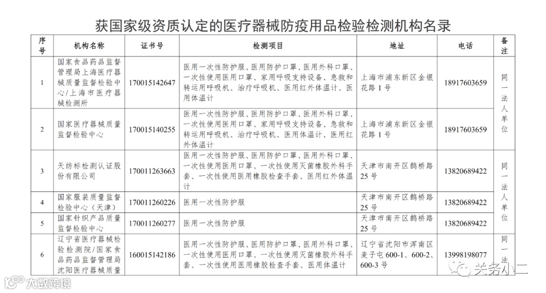 获国家级资质认定的医疗器械防疫用品检验检测机构名录(点击文末阅读原文可下载)