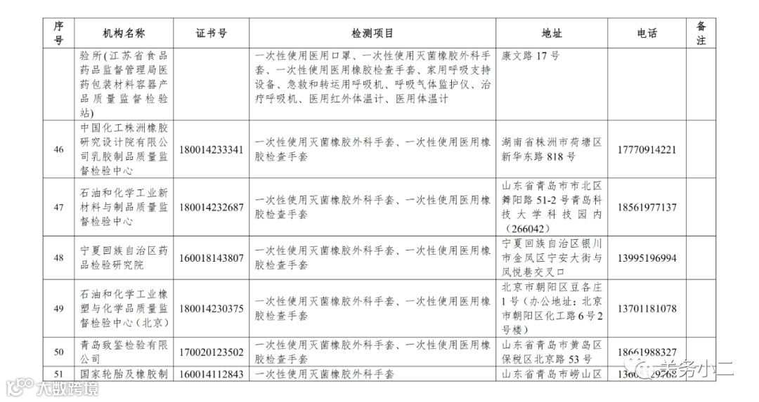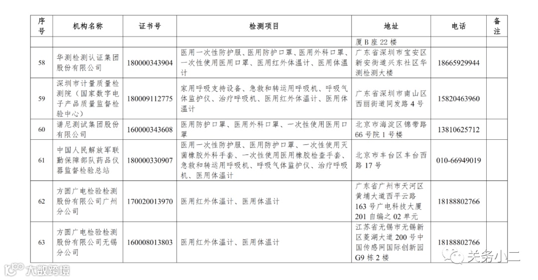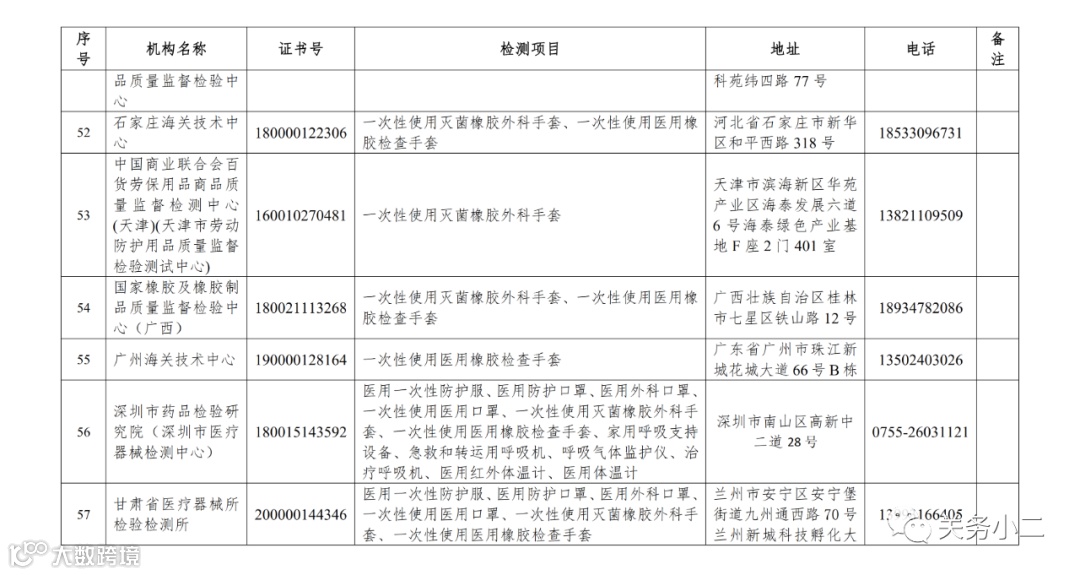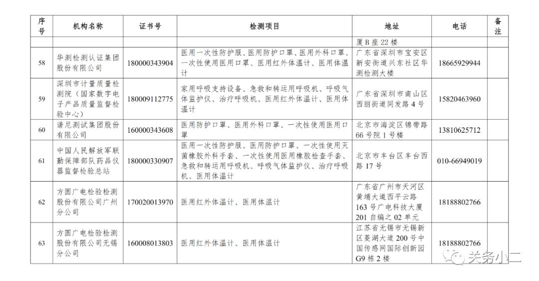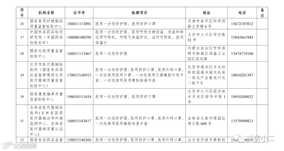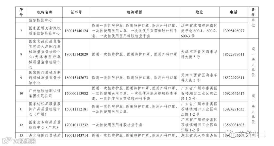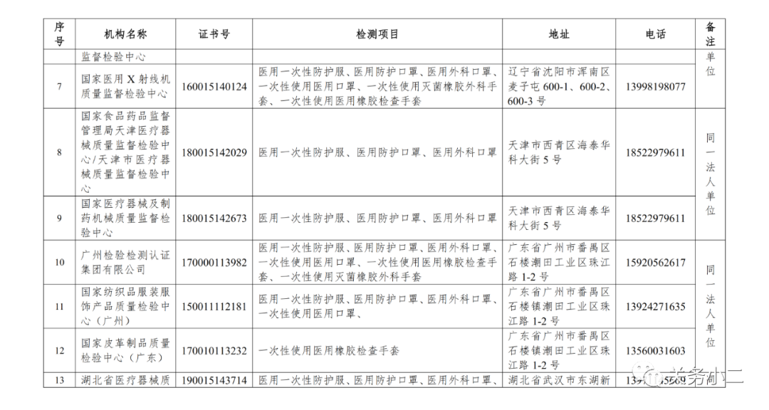 附件:获国家级资质认定的医疗器械防疫用品检验检测机构名录