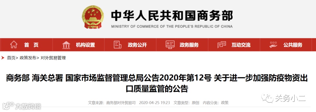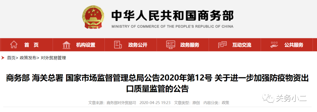在全球疫情持续蔓延的特殊时期,为更有效支持国际社会共同应对全球公共卫生危机,现就进一步加强防疫物资质量监管、规范出口秩序有关措施公告如下: