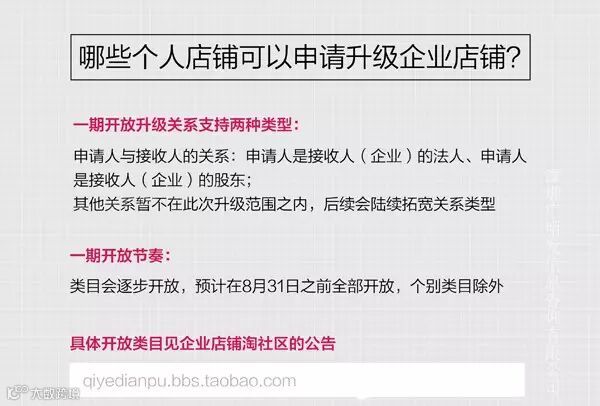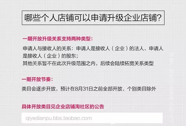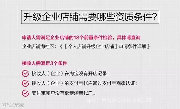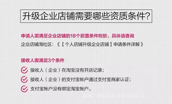 8月18日起,淘宝企业店铺再次升级,实际由企业经营的个人店铺可主动申请升级成企业店铺。