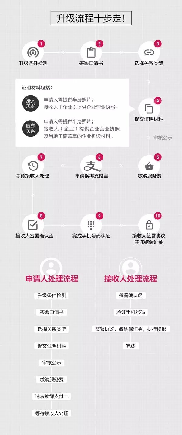 那么,此次开放升级通道之后,企业经营的个人店铺该如何升级为企业店铺呢?具体业务流程请见图解。