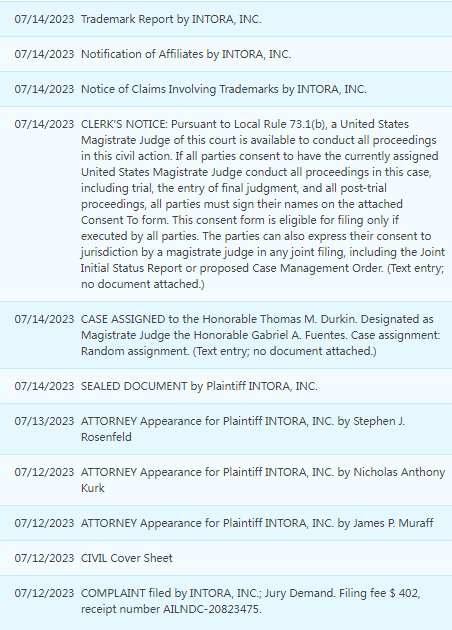 COMPLAINT filed by INTORA, INC.; Jury Demand. Filing fee $ 402, receipt number AILNDC-20823475.